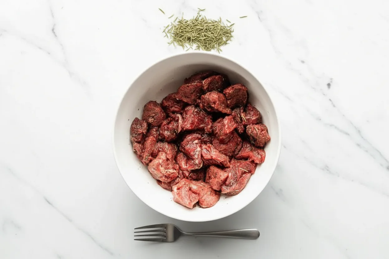 Thaw steak completely before cubing and seasoning. Frozen steak won’t brown properly and may cook unevenly.