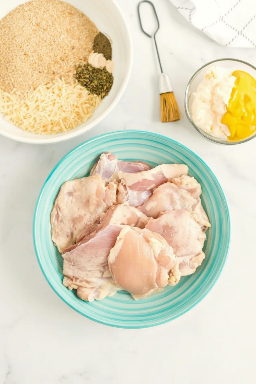 Freeze unbaked coated chicken thighs on a parchment-lined sheet until firm, then transfer to freezer bags. They’ll keep for 3 months. Bake frozen thighs at 375°F (190°C) for 50-60 minutes, skipping the thawing step.
