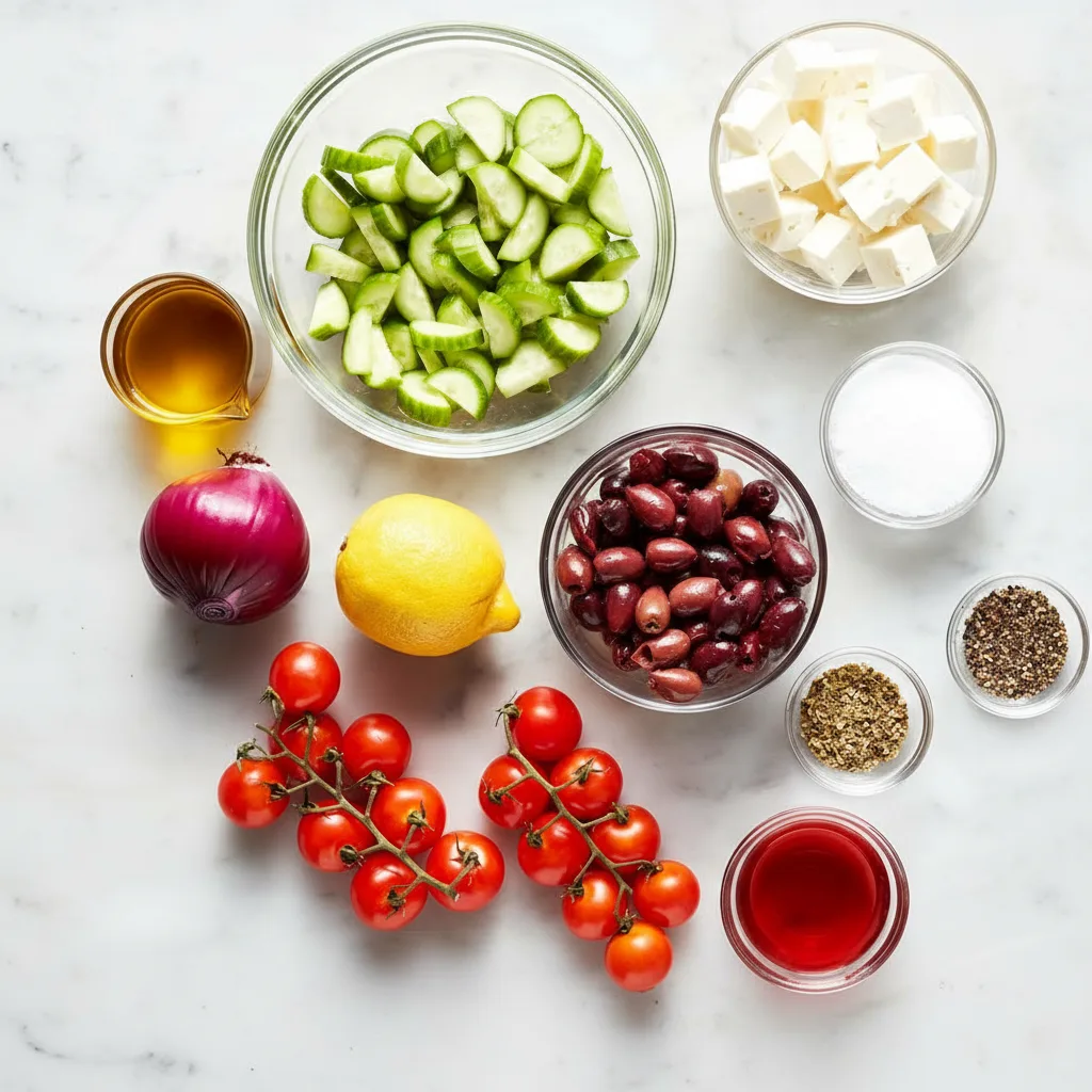 - Feta Cheese: The star! Use a block of authentic Greek feta in brine, cut into hearty cubes. Its creamy texture and tangy, salty flavor define the salad.