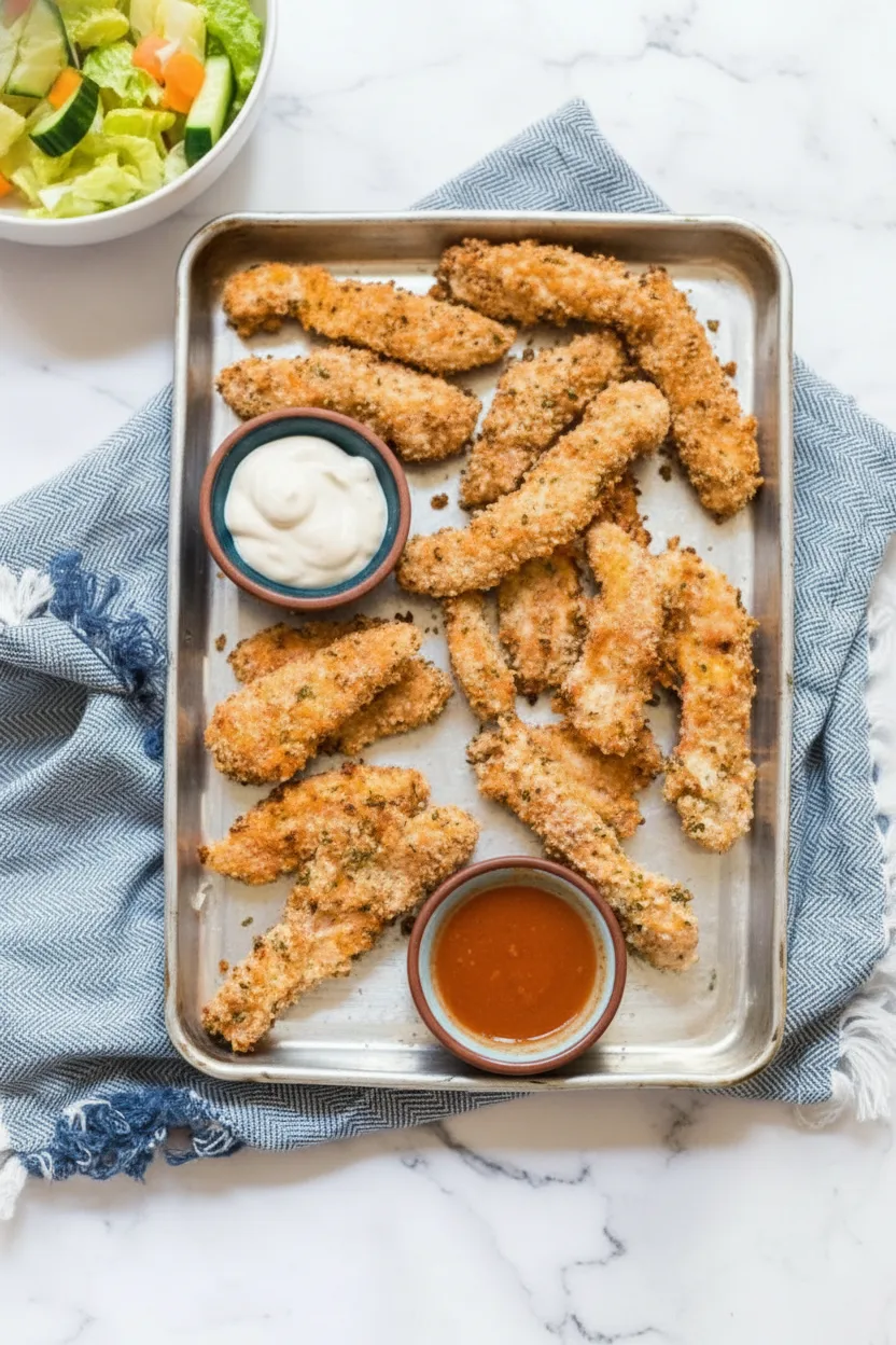 Best of all, these chicken strips batch-cook beautifully for meal prep enthusiasts. Make large quantities to enjoy hot dinners plus ready-to-go lunch proteins throughout busy weeks. Once you try this method, you’ll discover why baked chicken tenders remain America’s favorite health-conscious comfort food.
