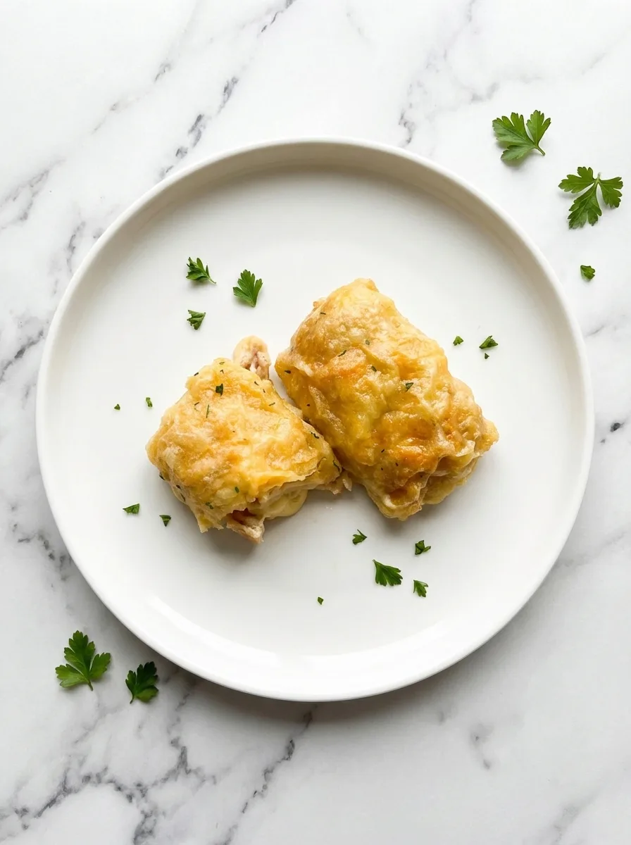 A comforting casserole featuring tender chicken and creamy cheese sauce wrapped in flaky crescent rolls