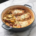 This creamy Dijon chicken and potatoes recipe proves that gourmet flavors don’t require hours in the kitchen. With its harmonious blend of tender protein, hearty vegetables, and luxurious sauce, this one-pan wonder delivers comfort food elegance with weeknight convenience.