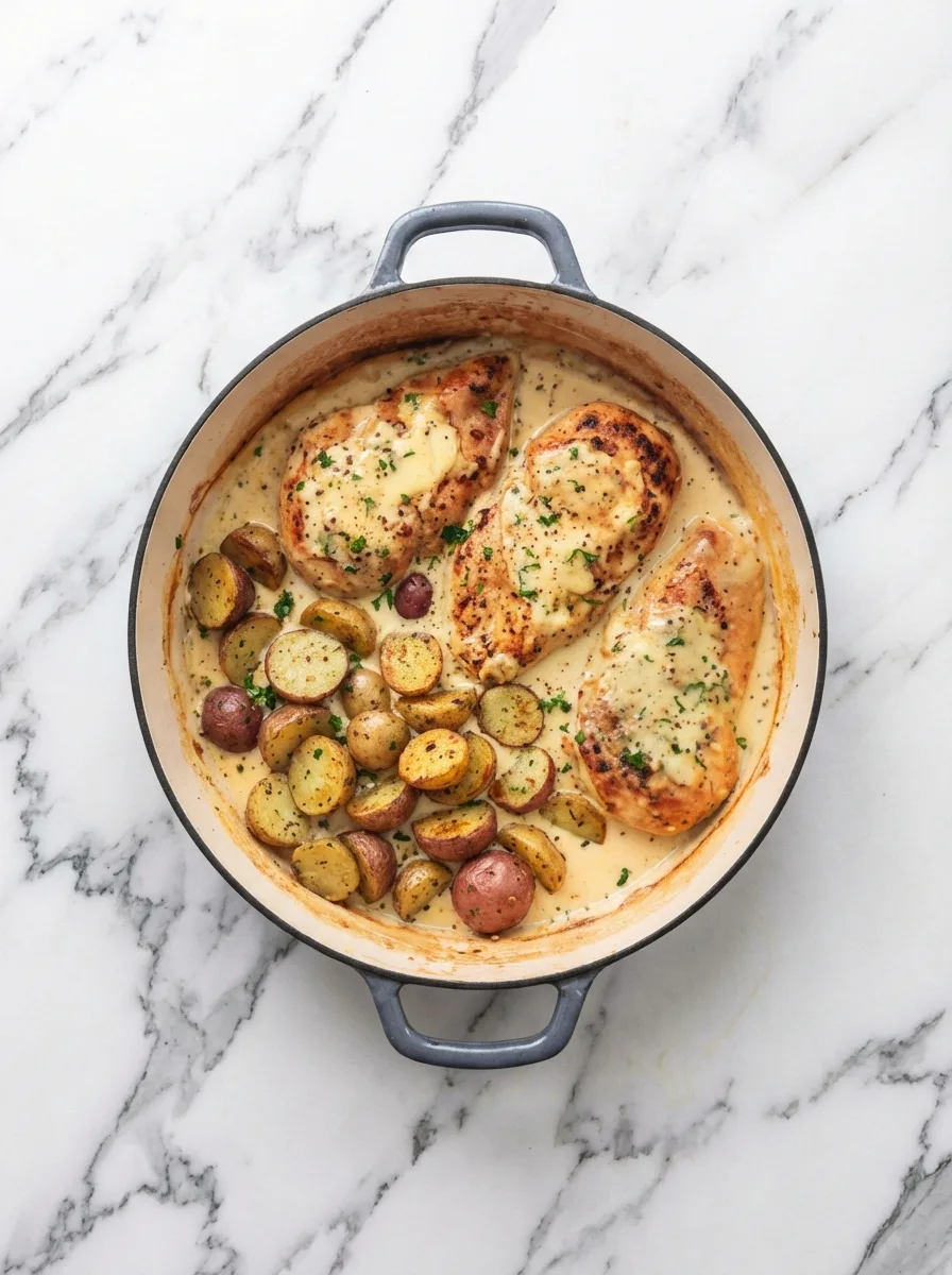 Second, the combination of creamy sauce, tender chicken, and roasted potatoes creates a complete dinner without sides. Third, you get restaurant-quality flavor using everyday ingredients.