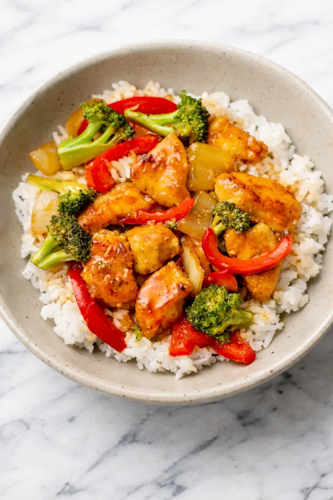 Get dinner on the table fast with this crowd-pleasing teriyaki chicken stir fry. With juicy chicken, crisp-tender vegetables, and a sweet-savory sauce, this one-pan meal delivers restaurant flavor in under 35 minutes.