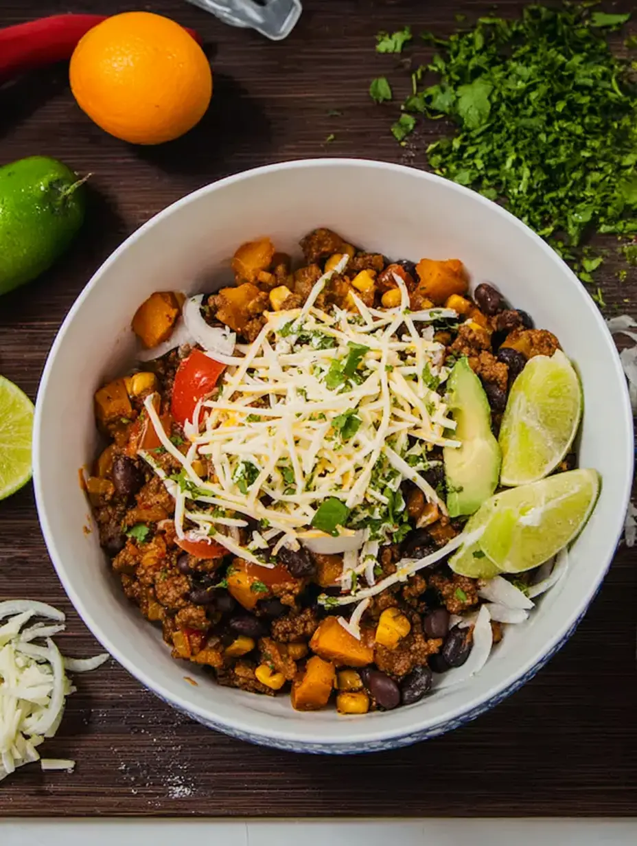 A flavorful and satisfying meal packed with seasoned ground beef, roasted sweet potatoes, black beans, and melted cheese. Perfect for a healthy dinner or weekly meal prep.