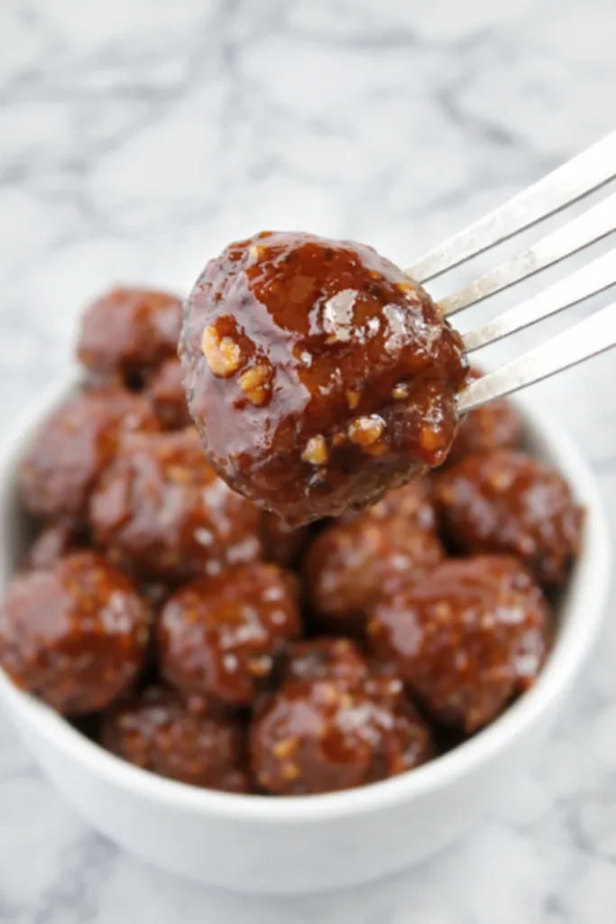 Effortless sweet and savory meatballs cooked to perfection in your slow cooker