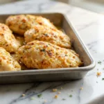 Juicy baked chicken breasts with creamy Parmesan topping that creates tender, flavorful results every time.