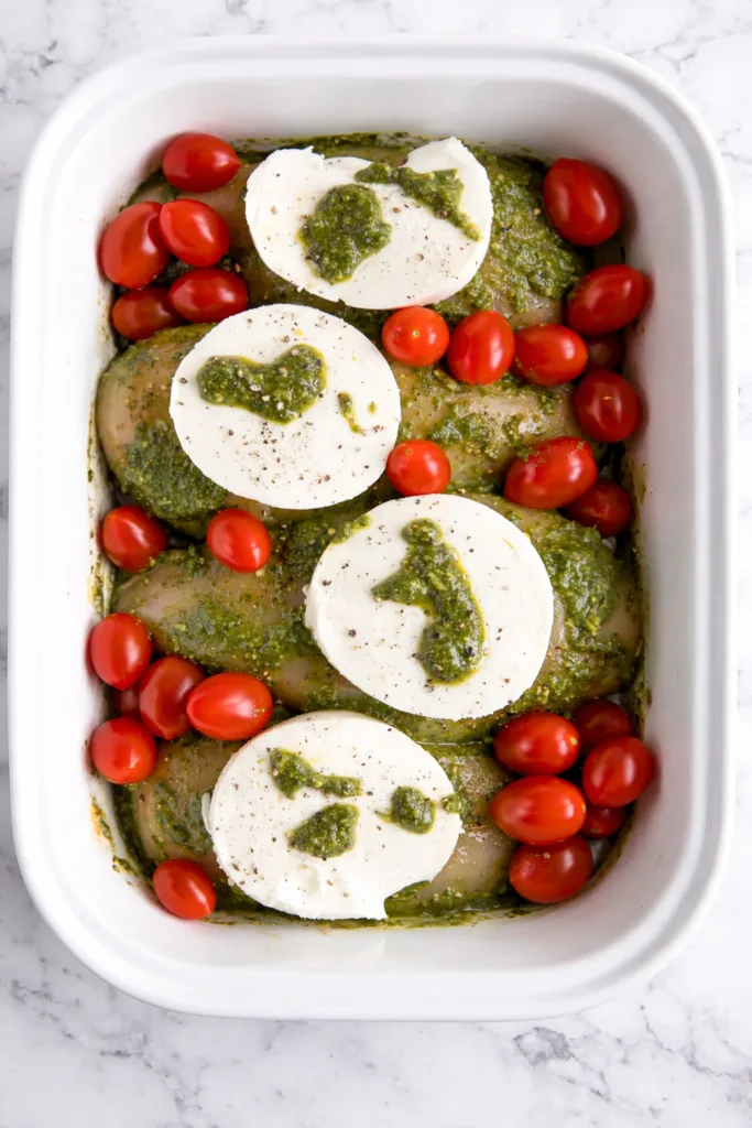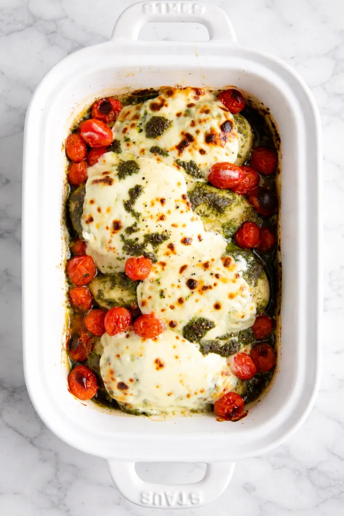 This pesto mozzarella baked chicken proves that impressive meals don’t require complicated techniques or expensive ingredients. With its vibrant colors and layered flavors, it delights both the eyes and palate. Whether cooking for family dinners or special occasions, it delivers consistent results that make you feel like a kitchen superstar. The bonus? You’ll have minimal cleanup afterward. Once you try this recipe, it will undoubtedly earn a permanent spot in your dinner rotation.