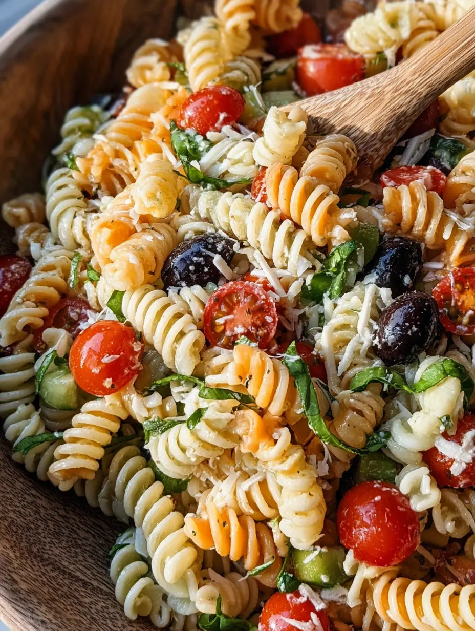 When you need a reliable, delicious, and visually stunning dish that can feed a crowd or serve as a quick family dinner, look no further than this Simple Italian Pasta Salad. This recipe embodies the perfect balance of flavors and texturesโ€”tender tricolor pasta, crisp vegetables, briny olives, creamy cheese, and a zesty homemade Italian dressing all come together in a harmonious blend.