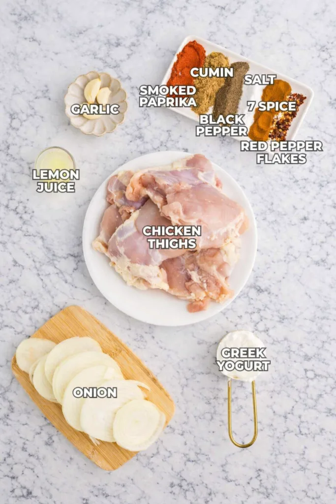 Boneless skinless chicken thighs stay wonderfully juicy during long cooking times compared to breasts. The marinade combines Greek yogurt’s tenderizing power with aromatic spices. Don’t have seven spice? Mix equal parts allspice, cinnamon, cloves, nutmeg, fenugreek, ginger, and cardamom for a DIY version. Smoked paprika provides depth, while red pepper flakes add gentle heat you can adjust to taste.
