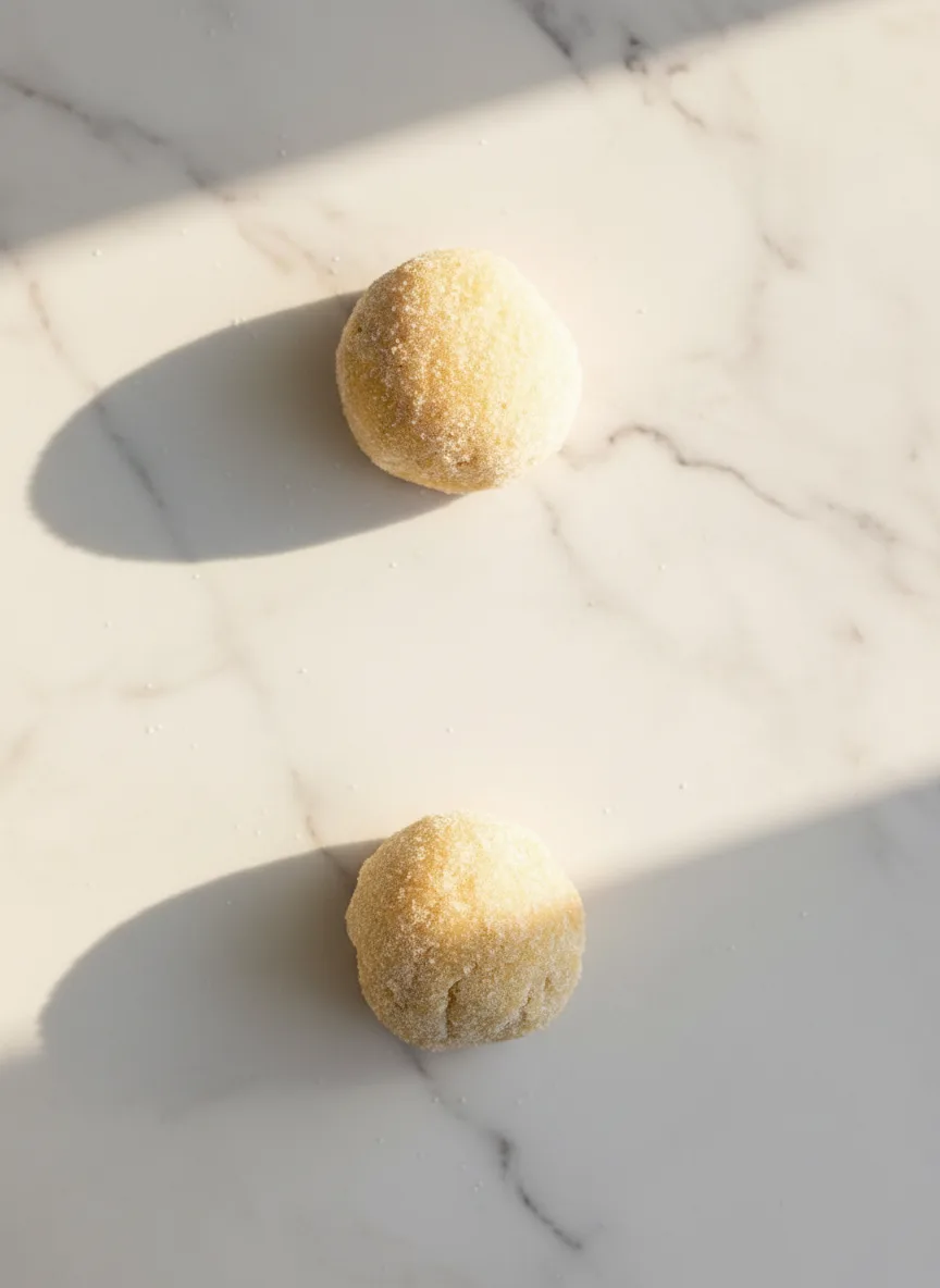Scoop the dough into five equal portions. A 3-tablespoon cookie scoop works perfectly, but you can use a spoon. Roll each portion into a smooth ball. Pour ¼ cup of granulated sugar into a small bowl. Roll each dough ball in the sugar until it is completely coated. This creates a sweet, crackly exterior. Place the sugared dough balls on your prepared baking sheet, leaving a couple of inches between them for slight spreading.